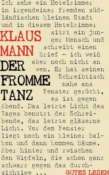 Ich sehe ein Hotelzimmer in irgendeiner fremden südländischen kleinen Stadt und in diesem Hotelzimmer sitzt ein junger Mensch und schreibt einen Brief - ich weiss aber noch nicht an wen. Er hat seinen Schreibtisch nahe ans Fenster gerückt, es ist gegen Abend. Das letzte Licht des Tages benutzt der Schreibende, das letzte gläserne Licht.