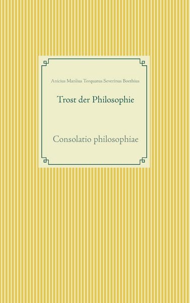 Gibt es Gott? Woher das Böse? - Gibt es Gott nicht? Woher das Gute? Gibt es Glück? Und warum ist dasselbe so oft auf der verkehrten Seite zu finden? Das Buch 'Trost der Philosophie' erörtert zentrale Fragen im Gespräch zwischen dem Autor selbst, Boethius und seiner Gesprächspartnerin, der (personifizierten) Philosophie. Die Consolatio philosophiae, der Trost der Philosophie ist das Hauptwerk des Boethius. Sie gilt als eines der letzten philosophischen Bücher der Antike und gleichzeitig eines der beliebtesten philosophischen Bücher des Mittelalters.
